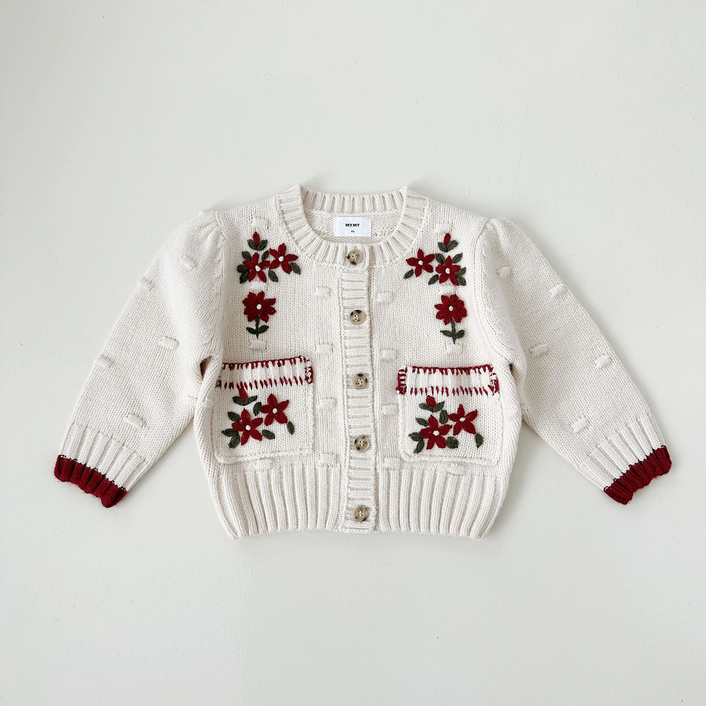 - Tip : 사랑스러움이 가득한 특별한 니트가디건, 석류나무 니트가디건이예요. 담백한 라운드넥 디자인에 따뜻한 무드의 아이보리 컬러와 빈티지한 무드의 핸드메이드 플라워 자수 디테일이 잘 어울려져 예쁜 포인트가 되어주고, 봉봉하고 귀여운 퍼프 소매와 자연스러운 아웃핏은 사랑스러움을 더해주어요.