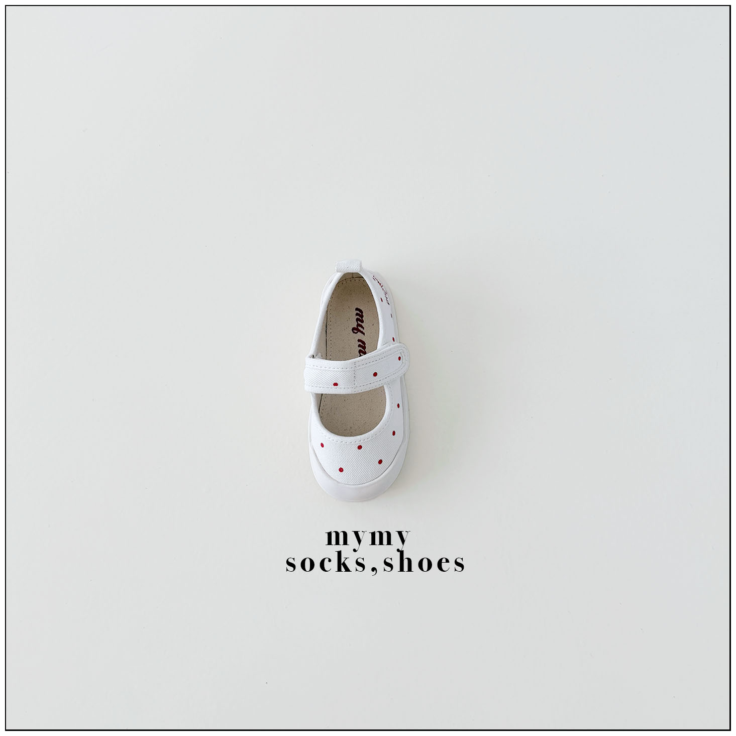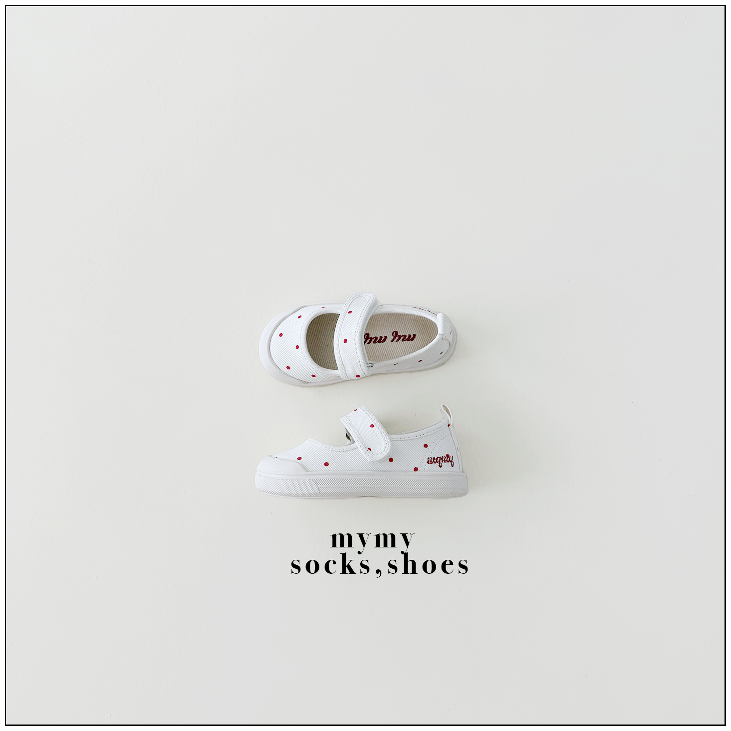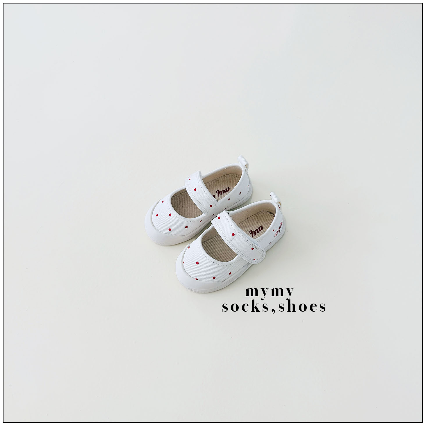 리드미컬한 스니커즈 디자인에 캐주얼한 컨버스 소재와 귀여운 레드 도트 패턴을 더해 작은 위트와 발랄함을 담았어요. 퓨어하고 깨끗한 아이보리 컬러는 어떤 룩에도 자연스럽게 어우러져 코디하는 즐거움을 더해주고, 폭신한 쿠셔닝으로 편안한 착용감을 전해요. 아이들 스스로도 쉽게 신고 벗을 수 있는 스트랩 디테일과 벨크로(찍찍이) 디테일까지 더해 아이들의 일상에서 데일리하게 신기 좋은 포인트 슈즈가 되어줄 거예요.