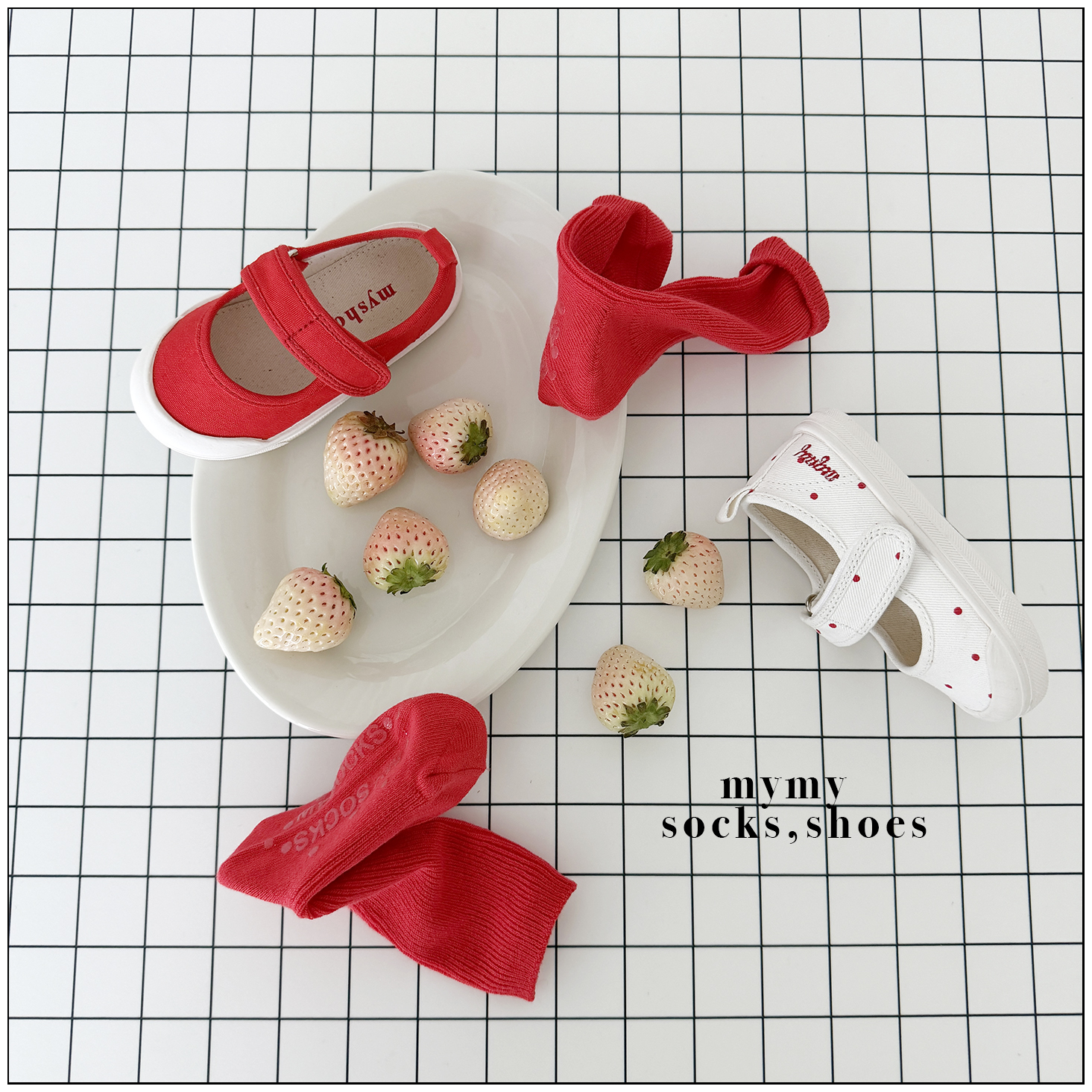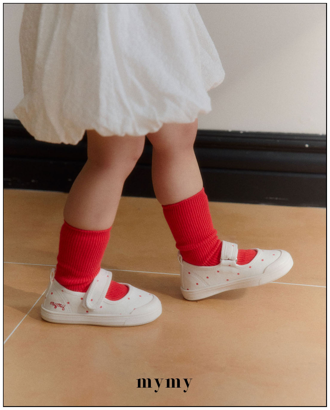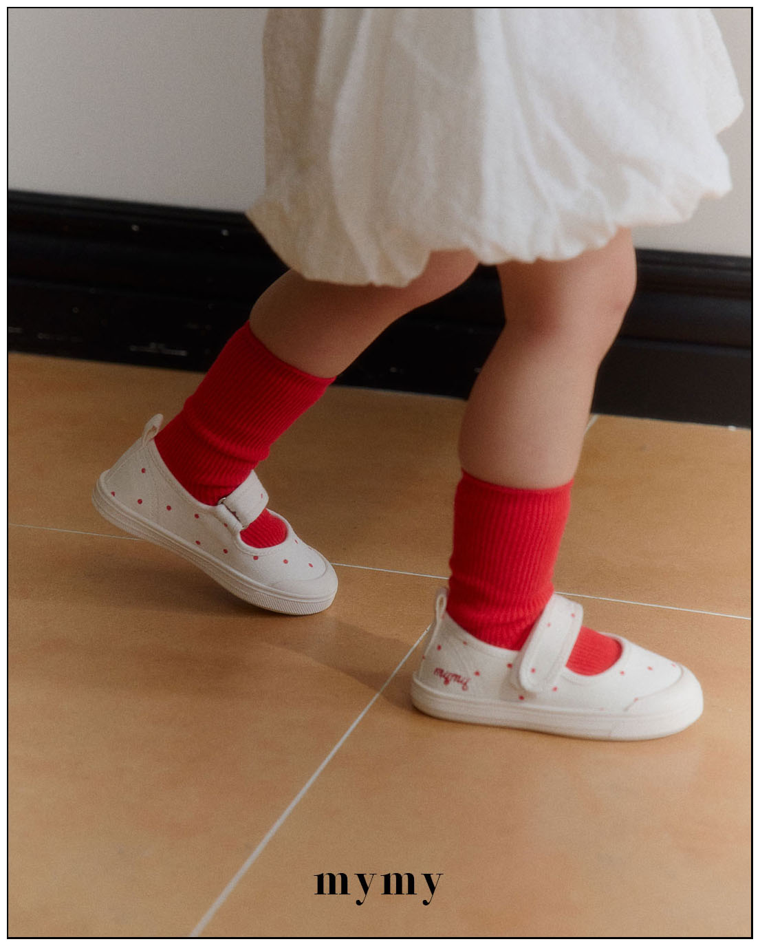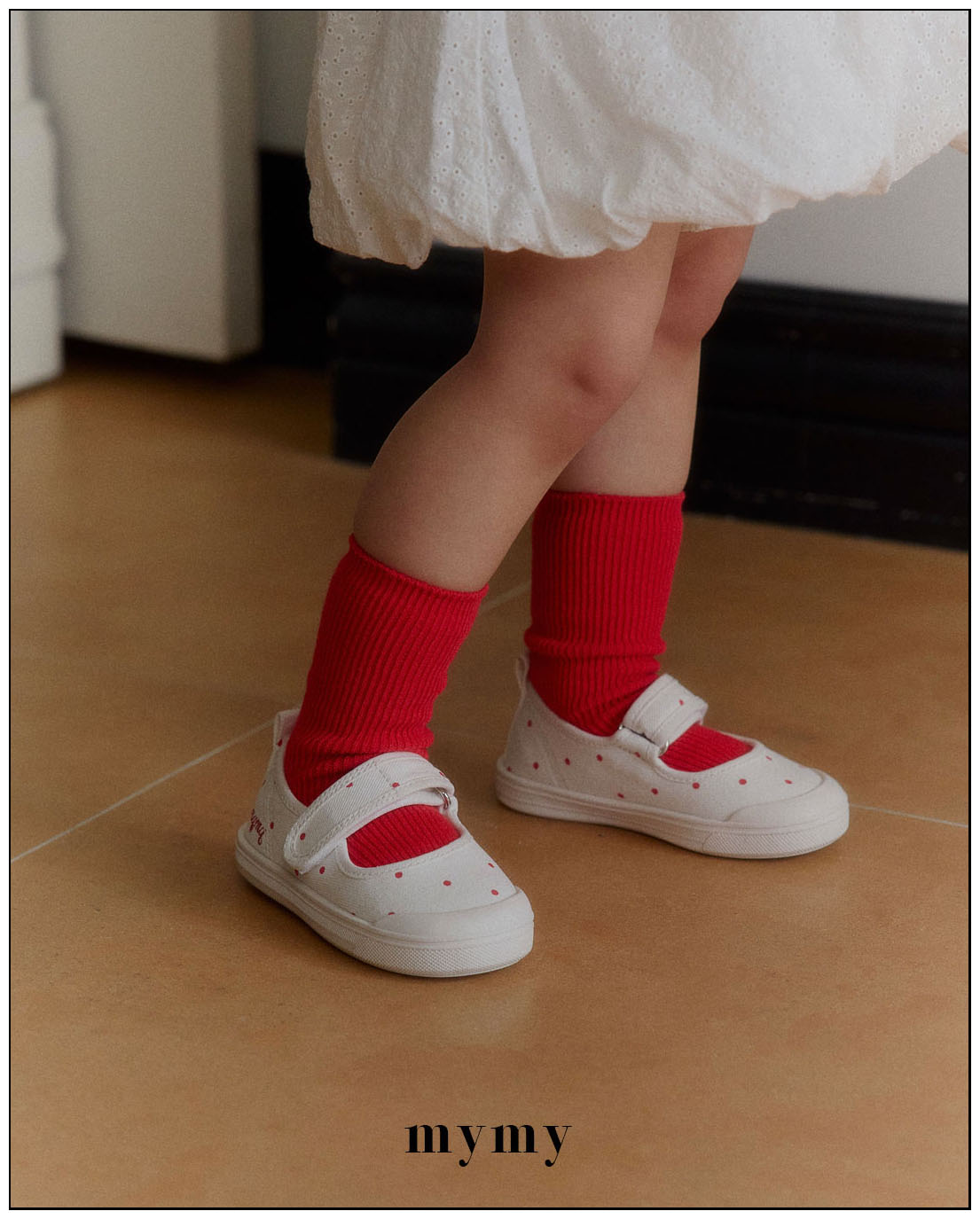 리드미컬한 스니커즈 디자인에 캐주얼한 컨버스 소재와 귀여운 레드 도트 패턴을 더해 작은 위트와 발랄함을 담았어요. 퓨어하고 깨끗한 아이보리 컬러는 어떤 룩에도 자연스럽게 어우러져 코디하는 즐거움을 더해주고, 폭신한 쿠셔닝으로 편안한 착용감을 전해요. 아이들 스스로도 쉽게 신고 벗을 수 있는 스트랩 디테일과 벨크로(찍찍이) 디테일까지 더해 아이들의 일상에서 데일리하게 신기 좋은 포인트 슈즈가 되어줄 거예요.