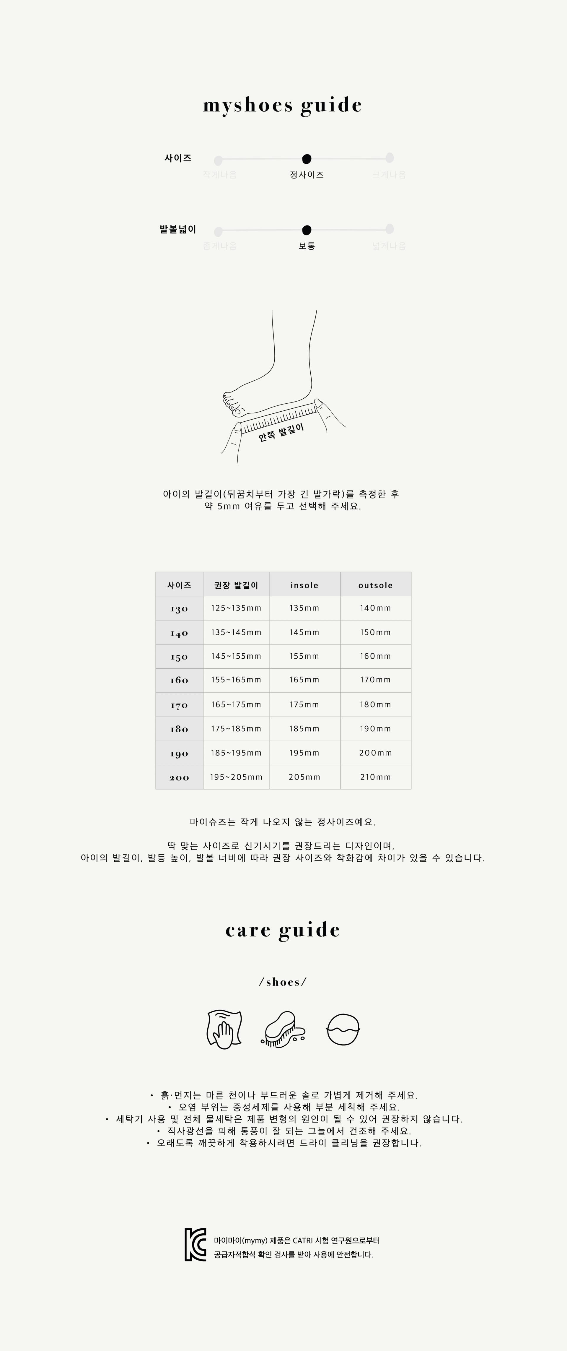 아이의 발길이, 발등 높이, 발볼 너비에 따라 권장 사이즈나 착화감에 차이가 있을 수 있습니다.